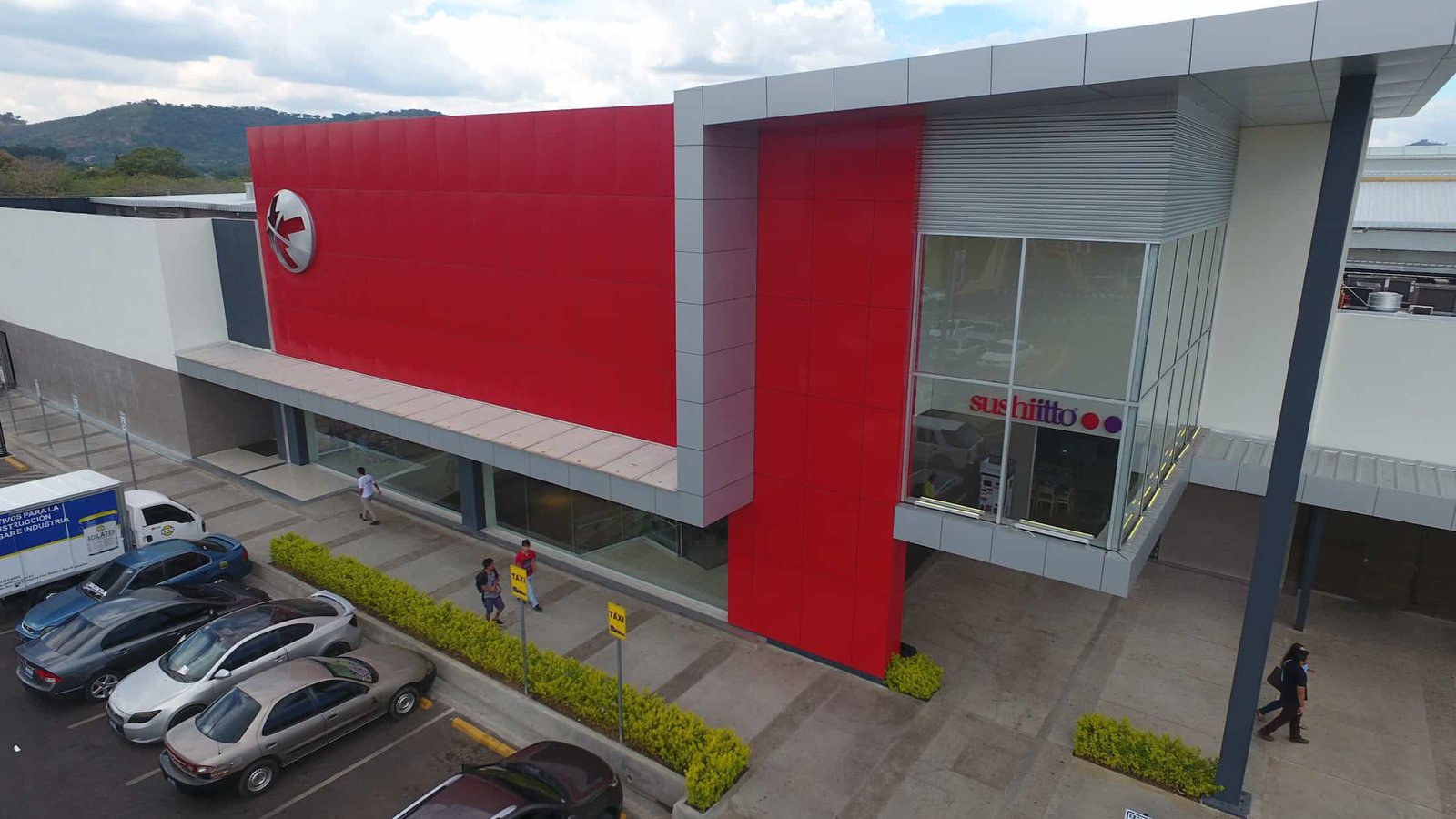 • Fachada integrada con forro de ACM rojo y bright silver